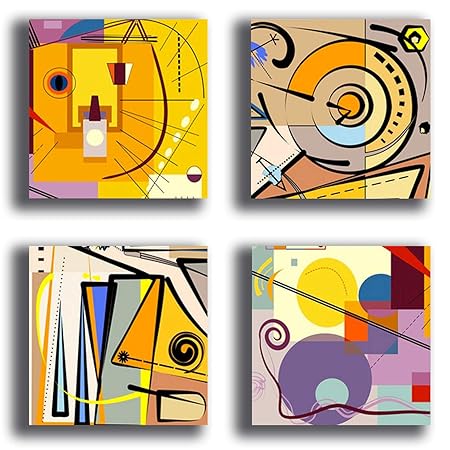 Quadri Moderni Stile Kandinsky Giallo Viola 4 Pezzi 40x40 Cm
