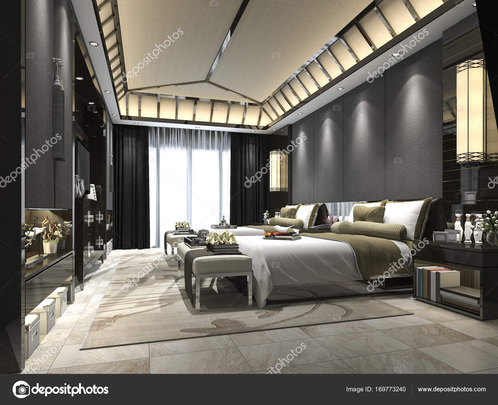 3d Rendering Luxury Modern Bedroom Suite In Hotel And Resort Stock