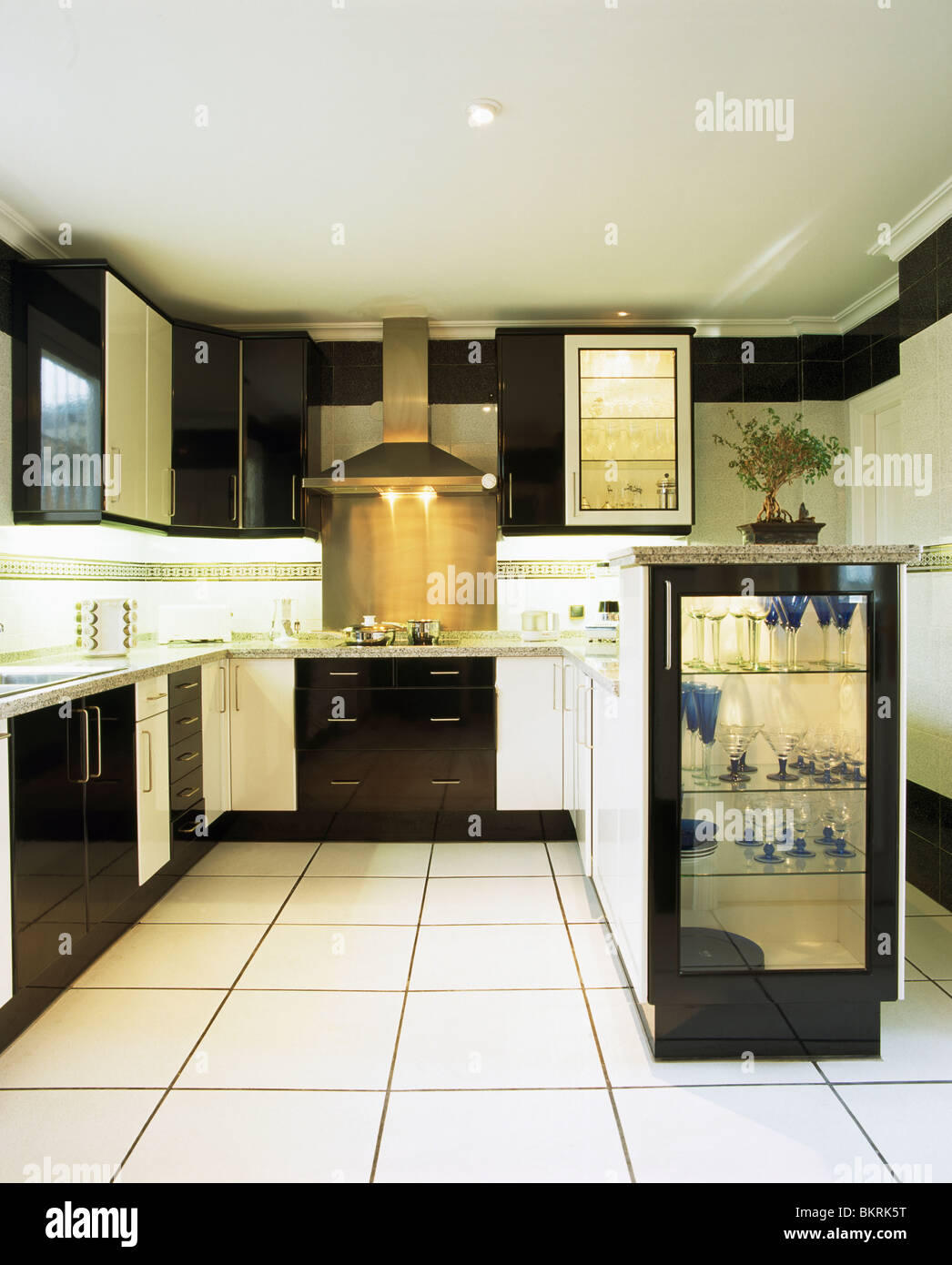 Bianco E Nero Dal Design Moderno Cucina Armadio Con Grande Isola L