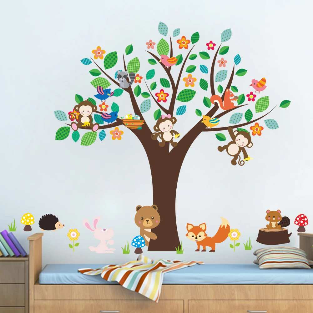 Acquista Foresta Animali Scimmia Gioca Sotto Fiore Albero Adesivo